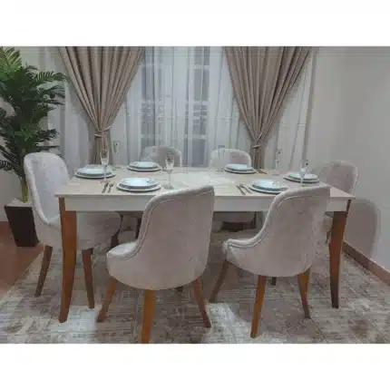 بوفيه خشبي متين بتشطيبات فاخرة يضيف جمالًا وأناقة لغرفة السفرة.