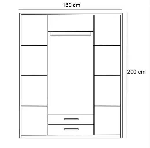 - المقاسات: العرض 160سم – العمق 50سم – الإرتفاع 200سم
