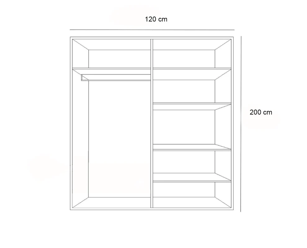 - المقاس: العرض 120سم – العمق 55سم – الإرتفاع 200سم