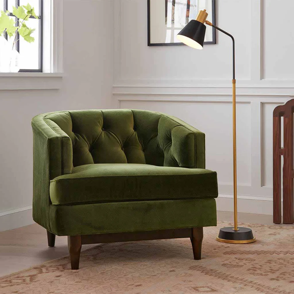 الكرسي ده بيقدم مزيج مثالي بين الجمال العملي والراحة الفائقة. القاعدة المصنوعة من خشب متين أو معدن قوي بتضمنلك ثبات، والتنجيد الفاخر بيخلي الجلوس عليه ممتع مهما طال وقت الاستخدام. تصميمه العصري بخطوطه الأنيقة يجعله إضافة مثالية لغرفة المعيشة، السفرة أو حتى المكتب، وكأنه لمسة فنية بتغير شكل المكان كله.