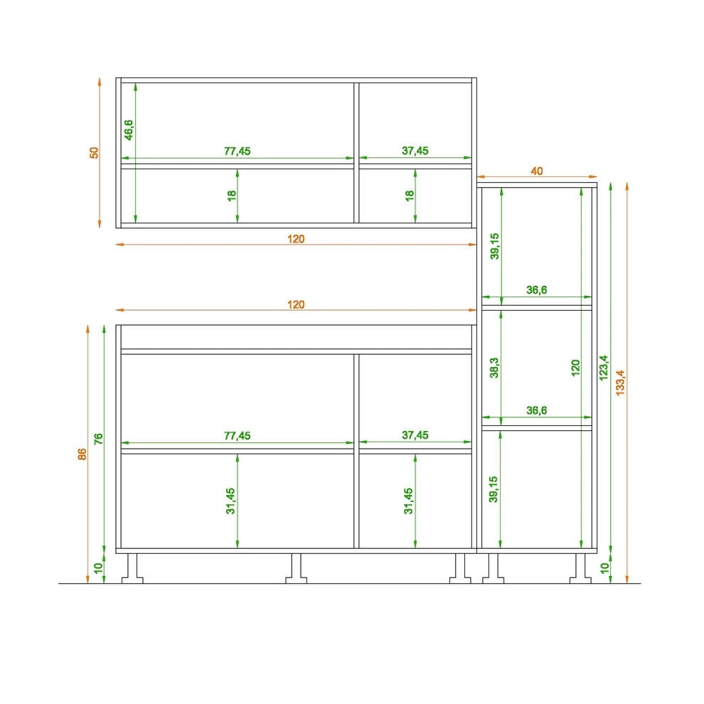 - مقاس الوحدة العلوية: العرض 120سم- العمق 30سم- الإرتفاع 50سم