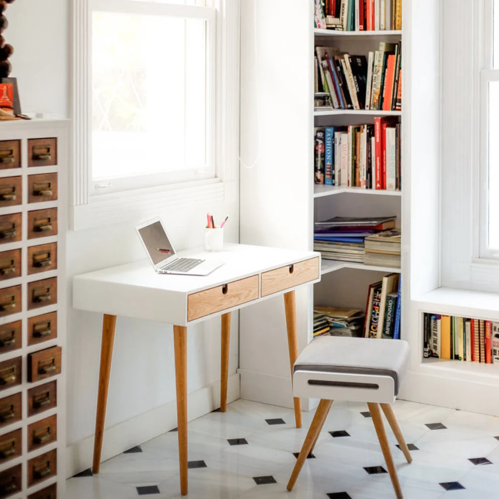 مكتب بتصميم عصري وخامات عالية الجودة، مثالي للعمل والدراسة مع لمسة ديكور أنيقة.