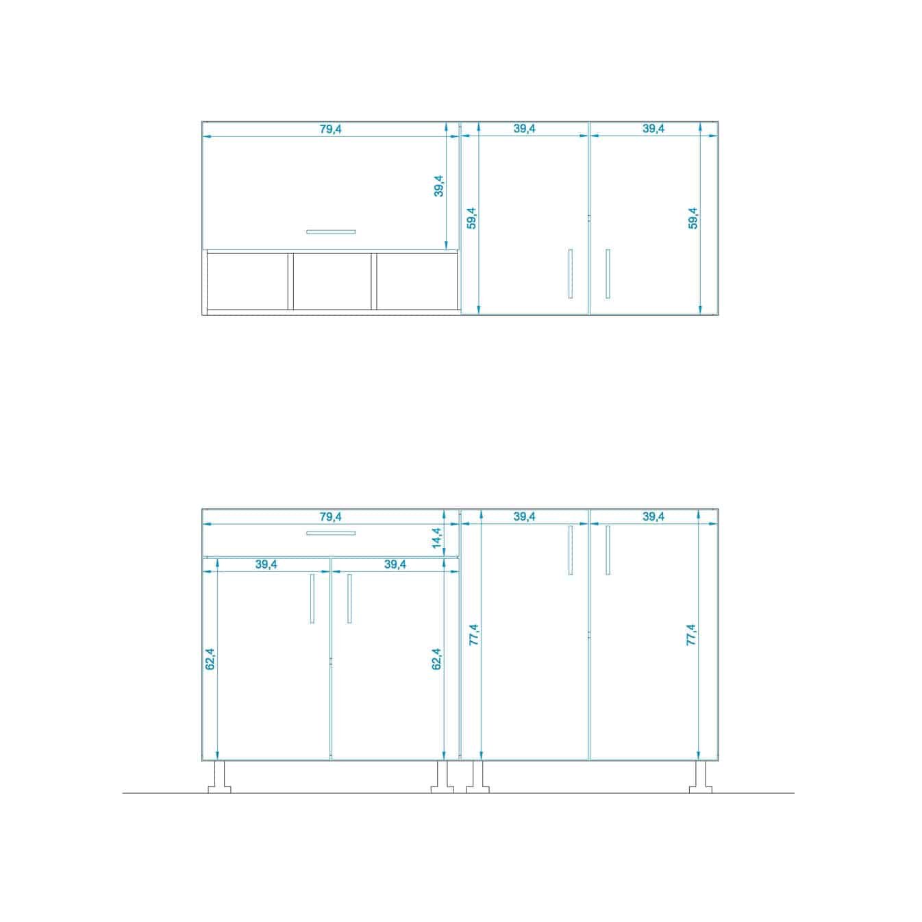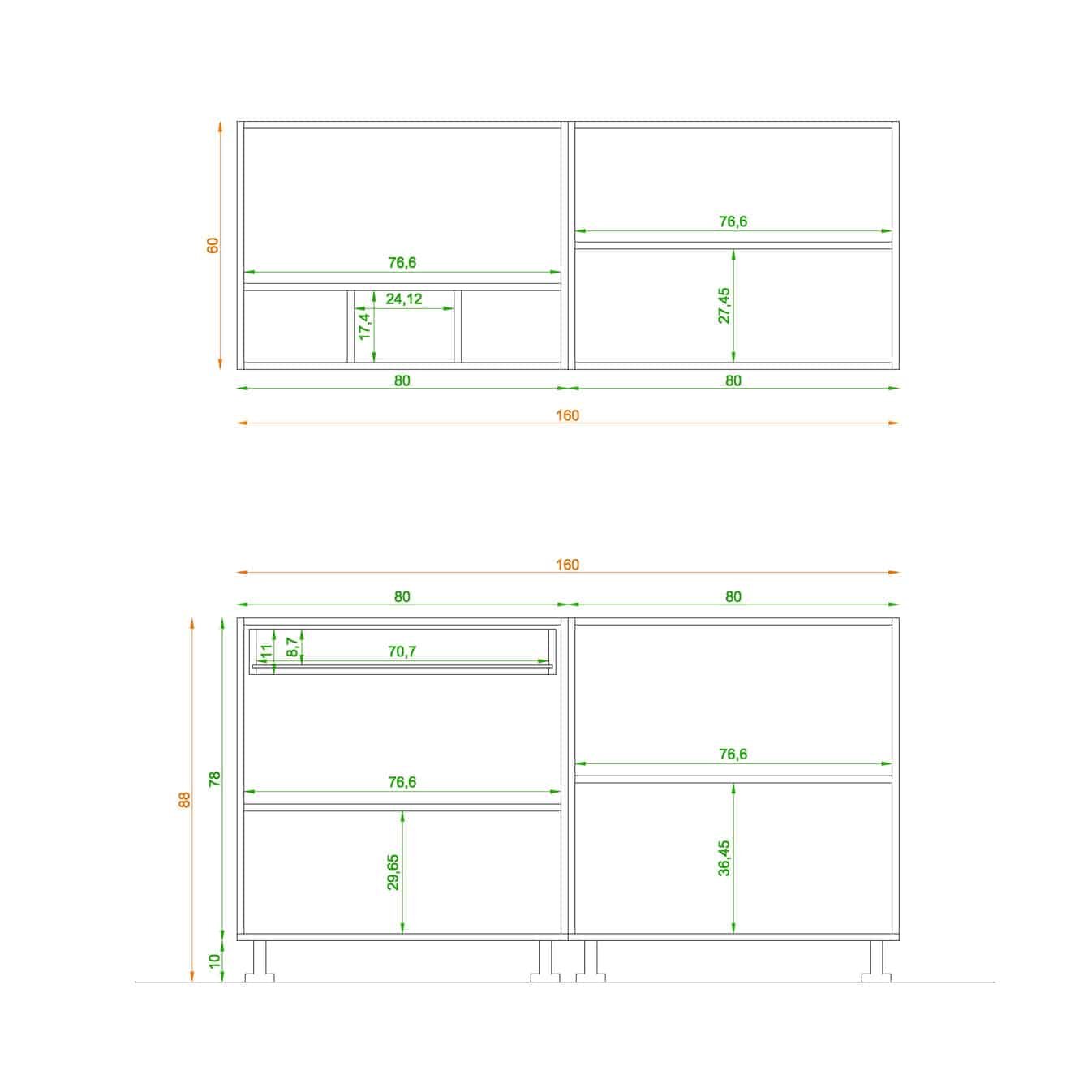 - مقاس الوحدة السفلية: العرض 160سم- العمق 58سم- الإرتفاع 88سم
