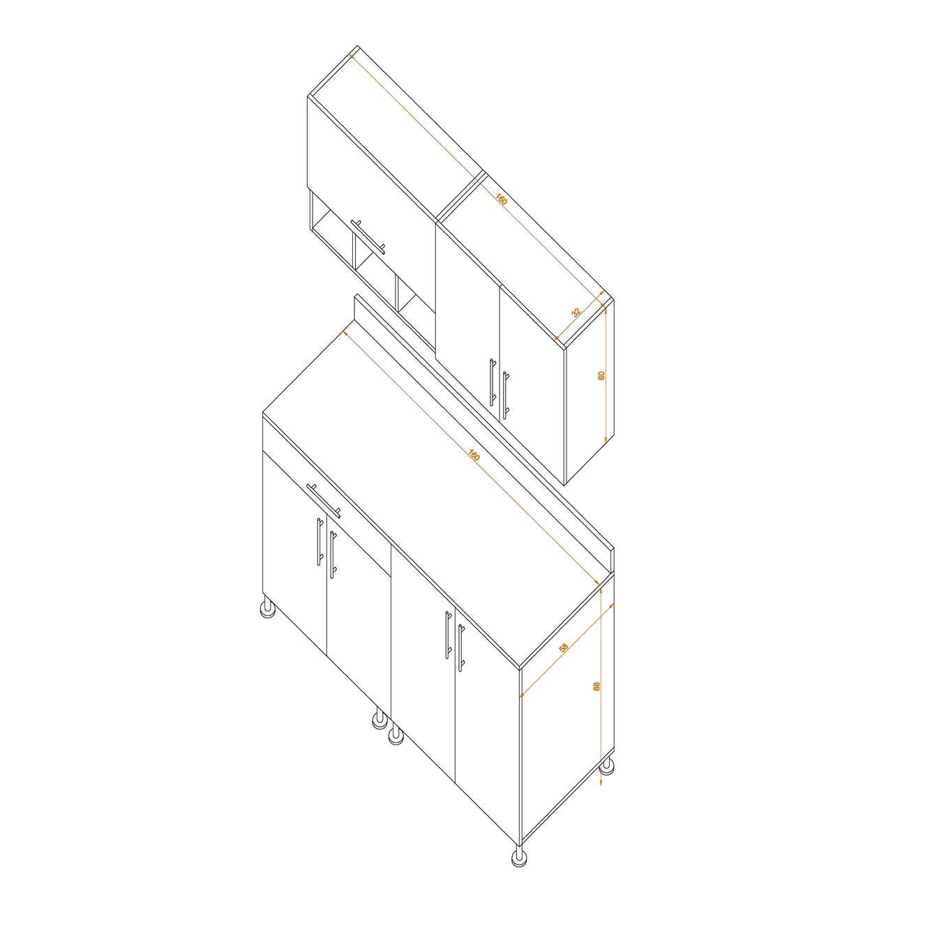 - مقاس الوحدة العلوية: العرض 160سم- العمق 32سم- الإرتفاع 60سم